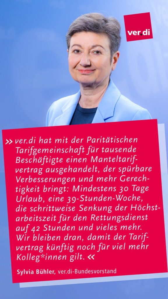 Der Arbeitgeberverband Paritätische Tarifgemeinschaft e.V. und die Vereinte Dienstleistungsgewerkschaft ver.di haben sich erstmals auf einen Tarifabschluss für einen überregionalen Manteltarifvertrag geeinigt.
